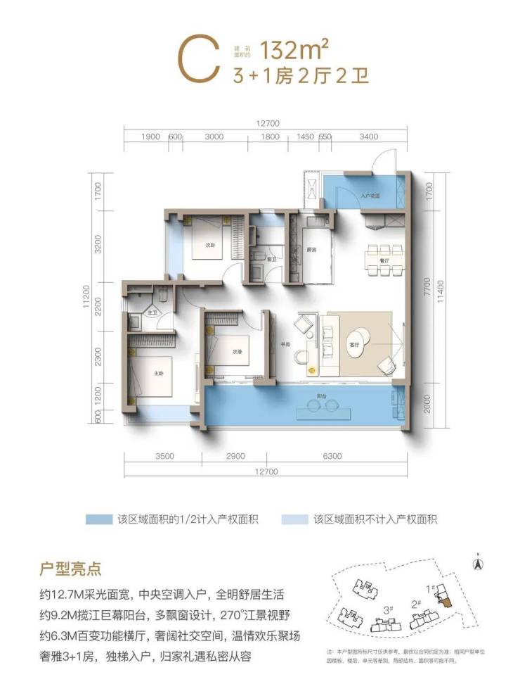 面积区间:约107-132㎡ 纯板宽幕江景美宅