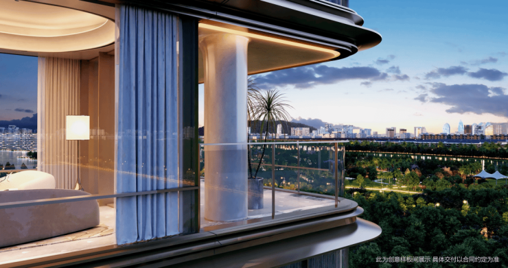 巨幕揽景:作为三亚首个新四代宅,该户型也采用了全景舱设计,拥有270度环幕视野,约41㎡观景阳台,可将窗外的山河城园尽收眼底。