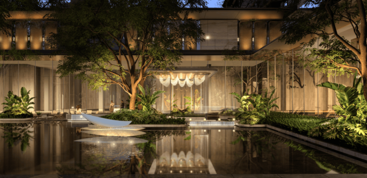 国际化大师景观团队倾力构筑,以“玉”为引,融入“繁花”,更有百年古树点缀,结合海南在地文化,以「六幕十二境」营造奢雅尊崇的礼序归家体验。