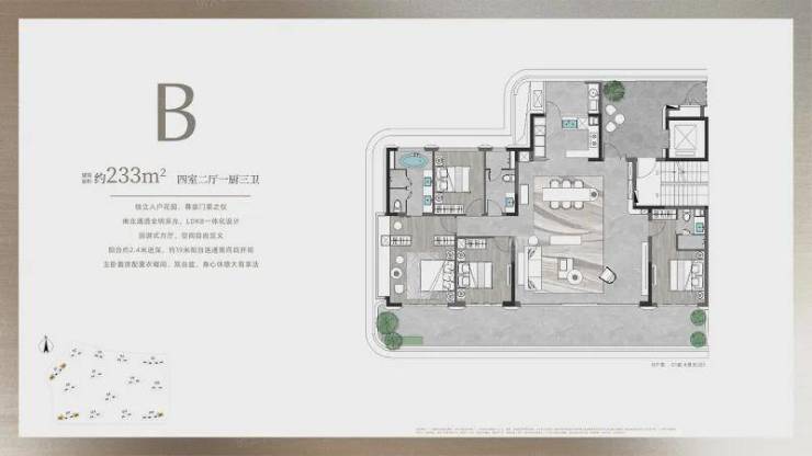 项目户型面积从约188-610㎡,全部为大平层设计,无入门级产品,确保了圈层的纯粹性和居住的舒适度。