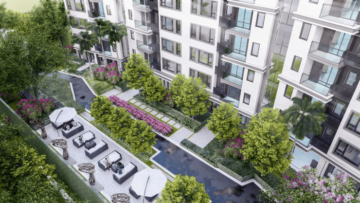 ?园林景观以亲近自然为目的,充分利用水景与绿化,创造丰富舒适的绿化空间
