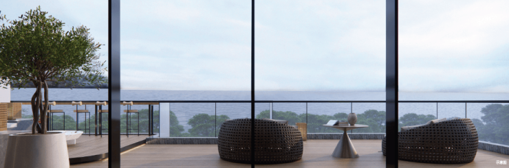 项目与海岸线最短直线距离约为200米,无遮挡俯瞰6公里绝美海岸与浩瀚南海,真正实现“推窗见海,抬首触云”的梦幻场景。